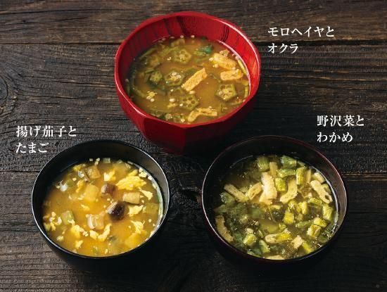 揚げ茄子とたまご(4個) モロヘイヤとオクラ(4個) 野沢菜とわかめ(4個) |